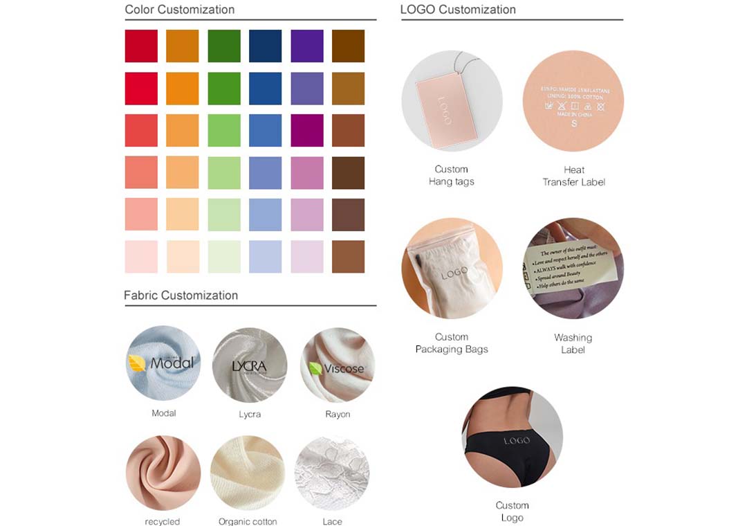 1. Stellen Sie ein vollständiges technisches Datenblatt bereit, in dem die Anpassungsanforderungen für die Periodenunterwäsche klar aufgeführt sind, einschließlich: Produktionsgrößentabelle, Stoff und Zubehör, Produktbilder, Prozessanforderungen, funktionale Anforderungen (z. B. wie viel Flüssigkeitsaufnahme ist erforderlich?), Markenlogo, Stil, Farbe, Menge usw.